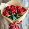 Упакованный в стильную крафтовую бумагу, этот букет сочетает в себе элегантность и простоту, придавая ему особый шарм. Натуральные оттенки упаковки подчеркивают яркость красных лепестков, создавая гармоничное сочетание, которое привлечет внимание и станет прекрасным акцентом в любом интерьере.