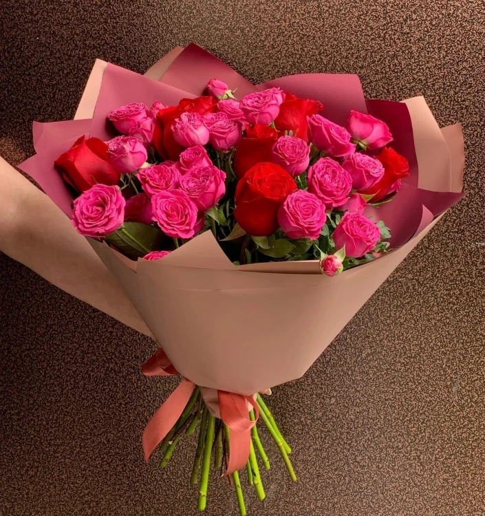 Великолепный букет "Нежная связь" поразит вас своим утонченным сочетанием культурных традиций и современного стиля. Этот шикарный букет из кустовых и одноголовых роз, упакованный в крафтовую упаковку, станет идеальным подарком для любого случая, отражая ваше всеобъемлющее восхищение и любовь.