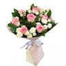 Букет "Воздушный" сочетает в себе утонченность розовых одноголовых роз и очарование белых кустовых роз. Каждая роза, словно воплощение нежности, располагается в элегантной бежевой упаковке, создавая гармоничное сочетание цветов и текстур.